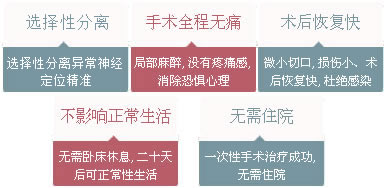 河池曙光男科医院针对阴茎敏感神经引起的早泄治疗有效的方法是“阴茎感知神经粘连分离术”+其他辅助治疗(如物理、药物等治疗)。该技术是针对海绵体肌外侧的敏感神经,在男性器官皮肤切口上切开一个2-3毫米长、0.5毫米深的微小切口,在通过我院引进的美国“黄金眼”BIO黄金眼敏感神经定位检查下有选择性将感知神经进行精细化分离,提高射精刺激阀,延长射精潜伏期,达到从根本上快速治疗早泄的目的。